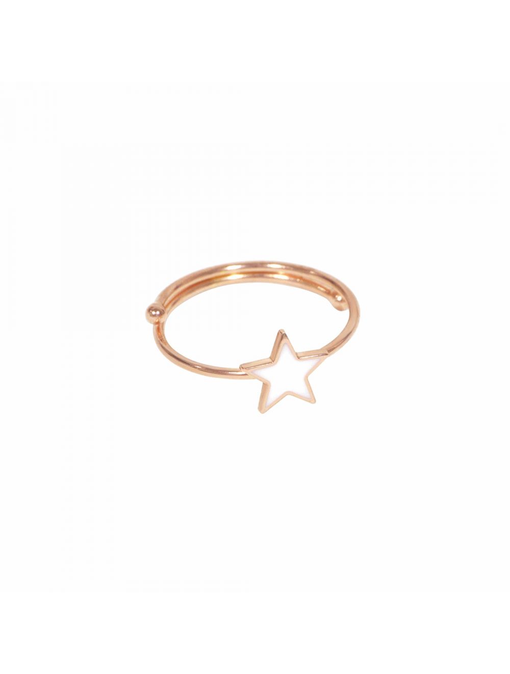 DescripciónEssentialRef. ANCAT070 Anillo elaborado con alambre redondo rígido de plata 925 de 1 mm de grosor, con baño de oro rosa de alta resistencia. Presenta una estrella de 8 mm con esmalte catedral blanco que aporta un toque delicado y luminoso. Su diseño ajustable permite adaptarlo cómodamente a tallas de la 9 a la 14 […]