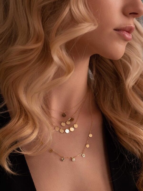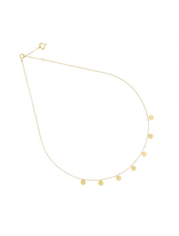 Collar de oro amarillo de 18 quilates con siete placas colgantes, una de las cuales lleva grabado el icónico corazón de Mamá, aportando un detalle distintivo y elegante. Su diseño combina delicadeza y sofisticación, reflejando la artesanía característica de Maman et Sophie.