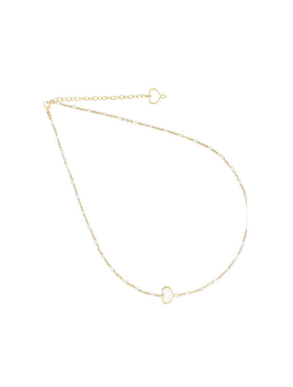 Gargantilla de plata 925 con baño de oro amarillo de alta resistencia y grosor, diseñada para aportar un toque sofisticado y moderno. La cadena está compuesta por eslabones esmaltados en blanco, que se alternan con un delicado corazón de Mamá esmaltado, creando un efecto elegante y contemporáneo.