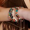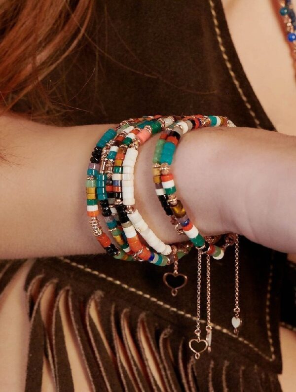 Pulsera “América de Piedras Profundas” de la colección América 1492, elaborada en plata 925 con baño de oro rosa de alto grosor y gran resistencia. Su diseño artesanal combina una exquisita selección de piedras naturales: cuarzo azul, ágata verde, ágata negra, jade, aventurina, jaspe rojo, ojo de tigre, coral, amatista, lapislázulo y aulita blanca. Cada piedra aporta un matiz único de color y energía, creando una pieza vibrante y sofisticada.