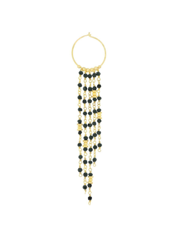 Pendiente de aro Essential con cascada de cadenas y piedras Spinello, que combina un diseño moderno y sofisticado. Elaborado en plata 925 con baño de oro amarillo de alta resistencia y grosor, destaca por su brillo y elegancia. Perfecto para ocasiones especiales o para añadir un toque refinado y distintivo al día a día.