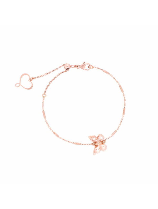 Pulsera “Mariposa de Invierno” Essencial con colgante de mariposa de plata 925 con baño de oro rosa de 12 mm. La base de la pulsera está elaborada en plata 925 con baño de oro rosa de gran grosor y resistencia, ofreciendo un diseño artesanal elegante y sofisticado. Su cierre con broche permite un ajuste cómodo desde 15 cm hasta 18 cm, adaptándose perfectamente a la muñeca. Ideal para lucir sola o combinar con otras pulseras, aportando un toque femenino, delicado y moderno a cualquier look.