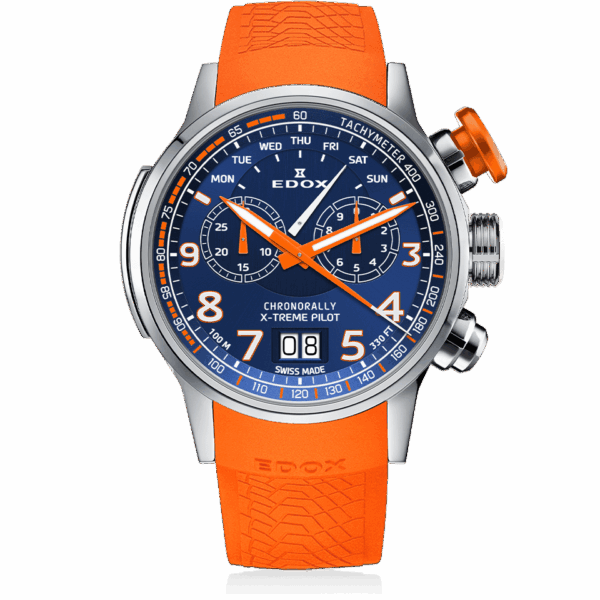El Edox Chronorally X-Treme Pilot es un reloj robusto y deportivo diseñado para un rendimiento extremo. Su caja de titanio de 48 mm ofrece ligereza y resistencia, mientras que el cristal de zafiro asegura máxima protección. Equipado con movimiento suizo de cuarzo (Calibre 38s, basado en Ronda 8020 N), incorpora funciones de cronógrafo y Big Date para una lectura precisa y funcional.