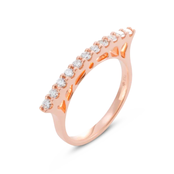 Sortija de oro rosa de 18 quilates que combina elegancia y brillo refinado. Engastada con 11 diamantes blancos de color G–H y pureza SI, que suman un total de 0.38 ct, ofrece un destello sofisticado y armonioso. Una joya versátil y delicada, perfecta para acompañar cualquier estilo con un toque de distinción.