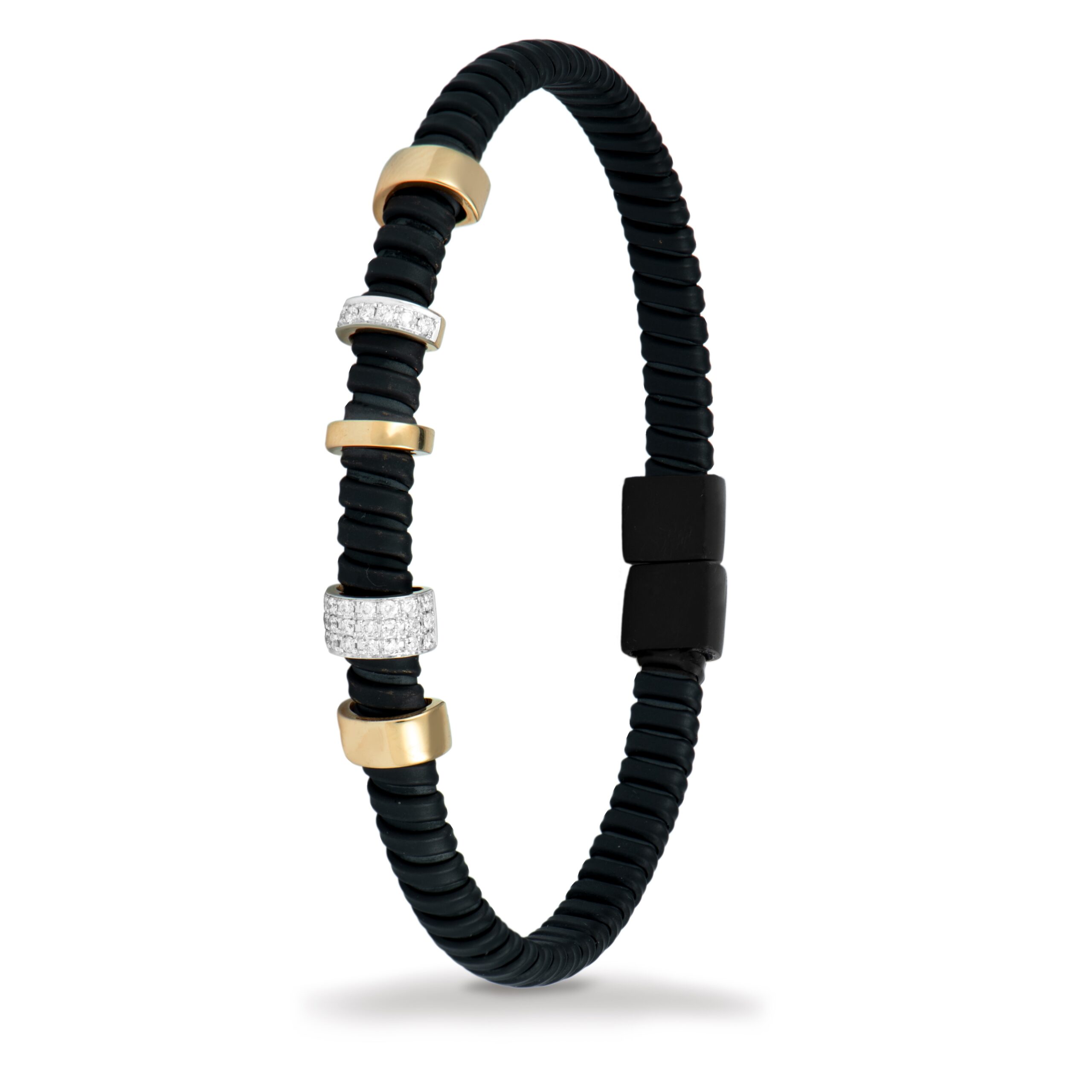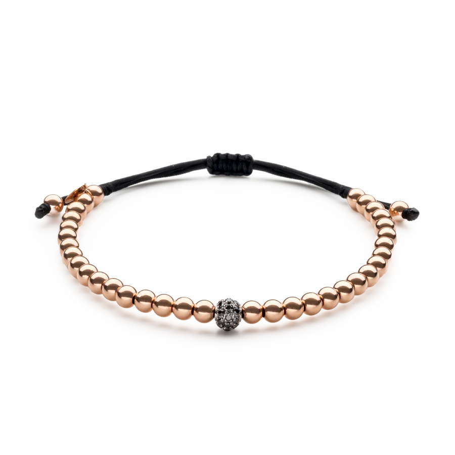 DescripciónRef. B4438JR025 Pulsera elaborada en oro rosa de 18 quilates (aprox. 2,46 g) con un diseño elegante y moderno. Está decorada con 26 piedras, incluyendo una bola pavé de 6 mm con diamantes negros y una bola de 4 mm, que aportan un contraste sofisticado y un brillo único. El cordón de nailon ajustable permite […]