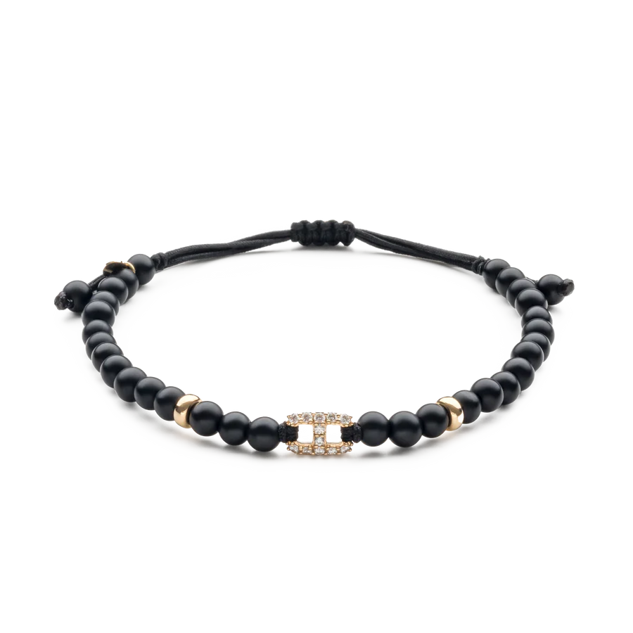 DescripciónRef. B2596MP312 Pulsera elaborada en oro rosa de 18 quilates (aprox. 1,06 g), combinada con ónix y un eslabón de diamantes, diseñada para ofrecer un estilo elegante y moderno. El cordón de nailon ajustable permite adaptar la pulsera a muñecas de 15 cm a 25 cm, proporcionando confort y versatilidad. Con 12 piedras cuidadosamente seleccionadas, […]