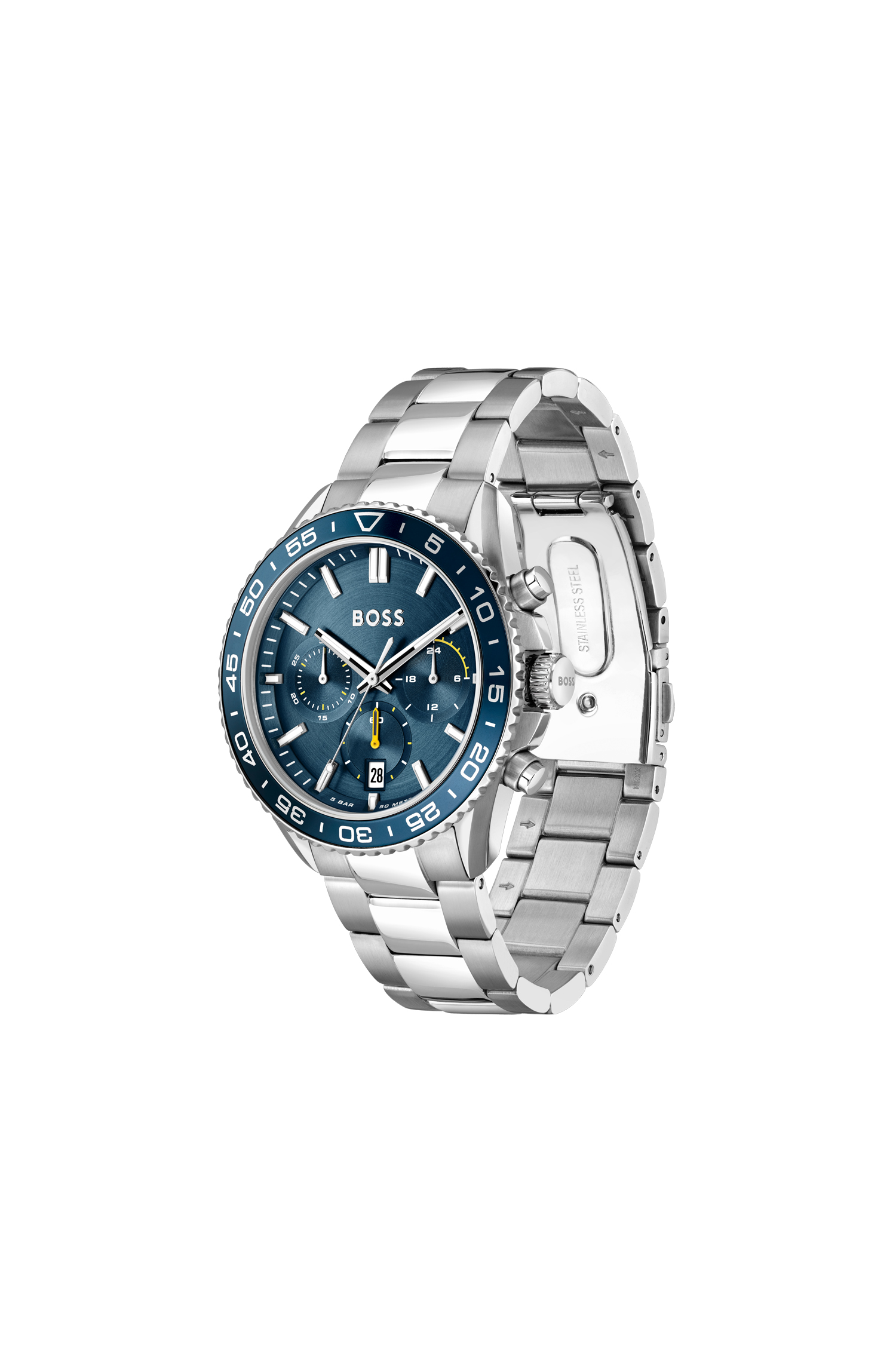 Ref. 1514226 Este reloj combina diseño contemporáneo y precisión técnica. Su caja de acero inoxidable de 44 mm y correa a juego ofrecen durabilidad y estilo refinado. En su interior, un mecanismo Seiko Instruments Inc. asegura fiabilidad y exactitud, protegido por un cristal mineral resistente. Con una resistencia al agua de 5 ATM, es ideal […]
