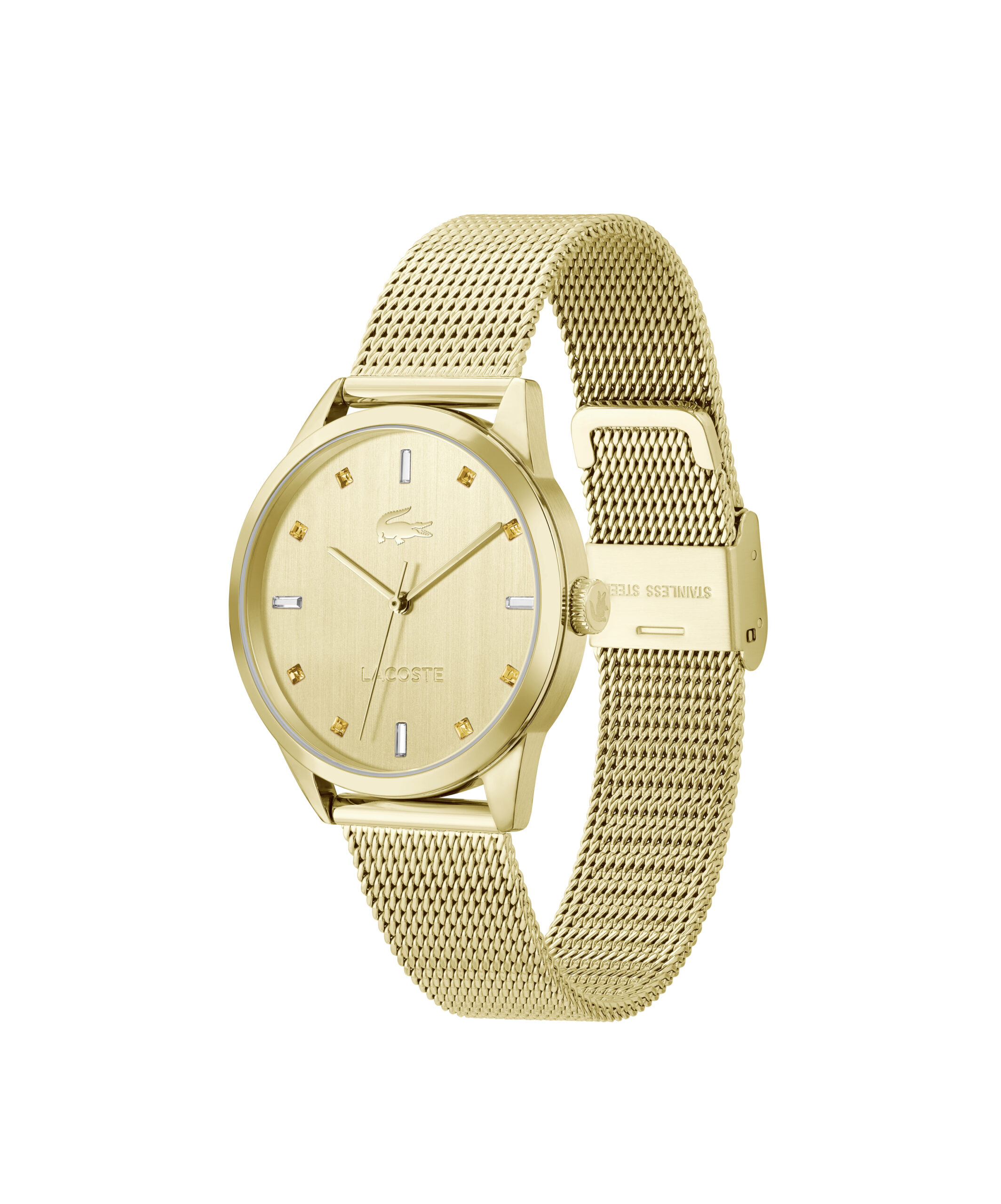 Ref. 2001343 El reloj Lacoste para mujer destaca por su elegancia atemporal y su diseño dorado integral. Con movimiento de cuarzo, caja redonda de acero inoxidable de 36 mm y cristal mineral, ofrece precisión y durabilidad. Su esfera y correa doradas aportan un toque sofisticado, ideal para cualquier ocasión. Resistente al agua hasta 30 m […]